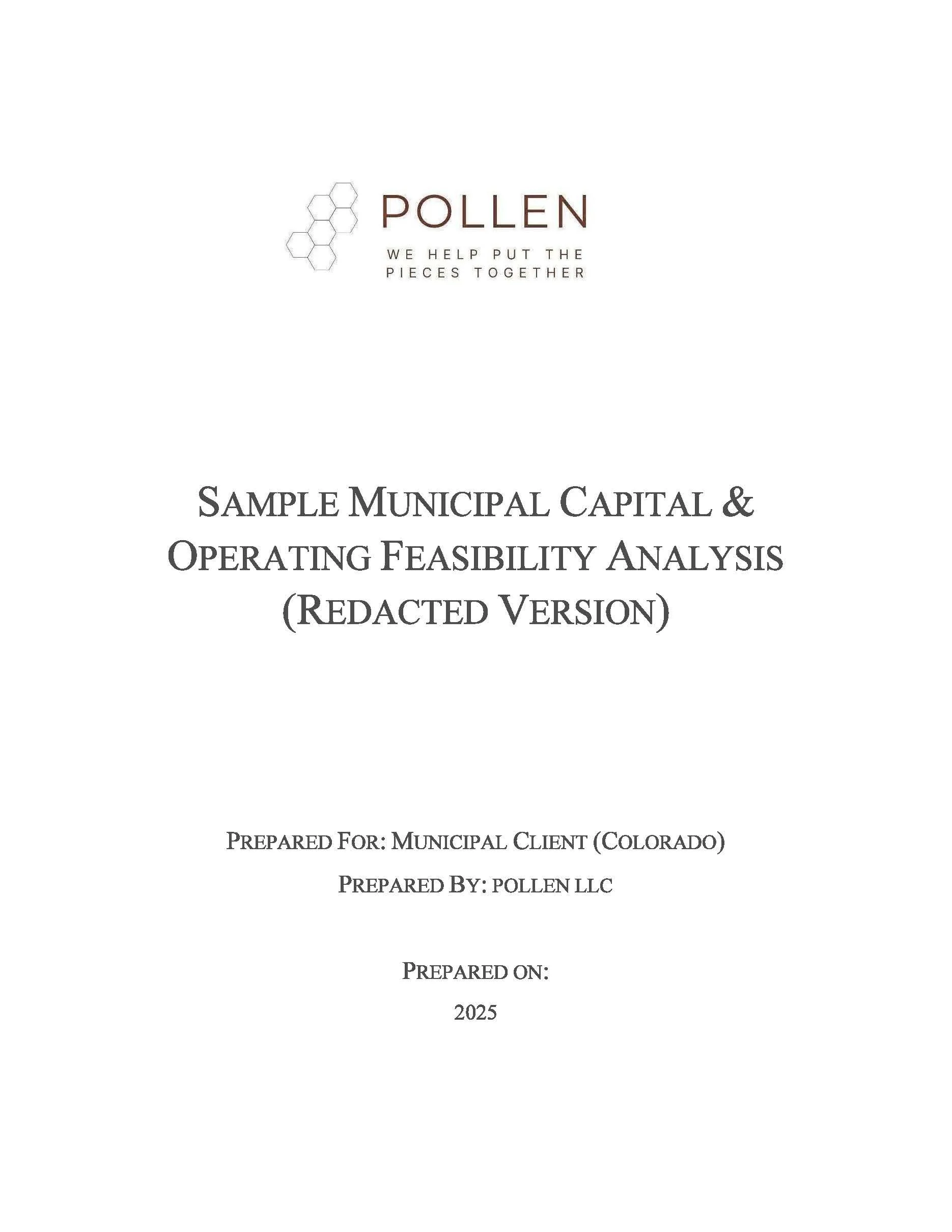 This redacted sample feasibility study demonstrates how Pollen LLC evaluates capital investment, operating sustainability, and long-term financial risk for mission-driven projects. Our work integrates capital budgeting, multi-year operating projections, and scenario testing to clarify structural viability before significant resources are committed. All financial figures and identifying details have been removed for confidentiality.